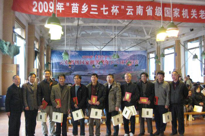 2009年12月30日,為期三天的2009年度“苗鄉(xiāng)三七杯”云南省級(jí)國(guó)家機(jī)關(guān)老干部乒乓球比賽成功閉幕,本次比賽由云南省國(guó)家機(jī)關(guān)老年乒乓球協(xié)會(huì)主辦、云南昆明鐵軍乒乓球俱樂部承辦,云南昆明苗鄉(xiāng)三七有限公司贊助舉辦。