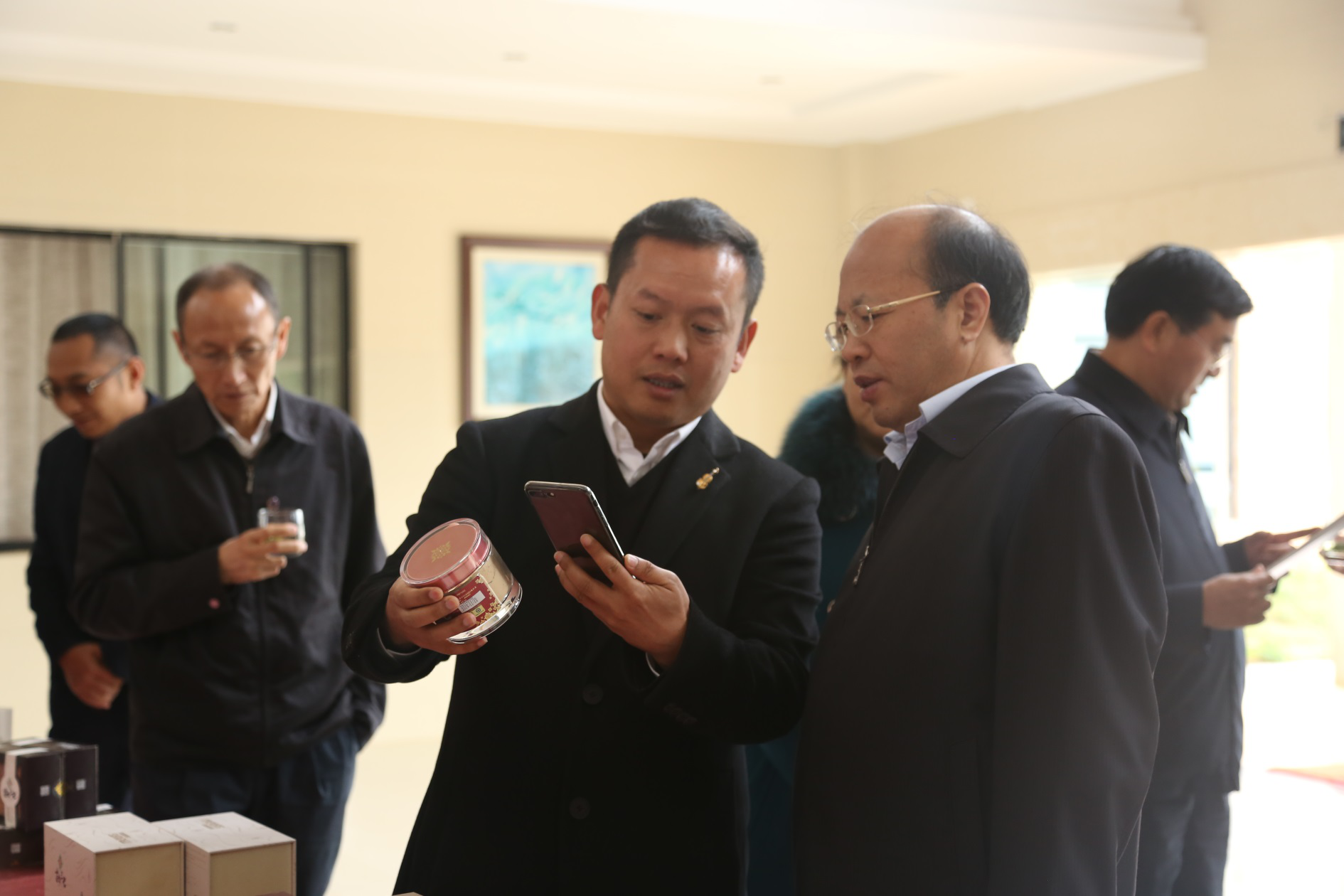 在良繁中心的產(chǎn)品展示廳,余董事長向李副書記一行介紹了苗鄉(xiāng)有機三七系列產(chǎn)品并現(xiàn)場演示了產(chǎn)品二維碼溯源系統(tǒng),通過APP終端掃描二維碼可清晰追溯到產(chǎn)品從一粒種子開始到成品的任何一個種植、加工、銷售環(huán)節(jié),確保了用戶可以買到安全可靠的三七產(chǎn)品。
